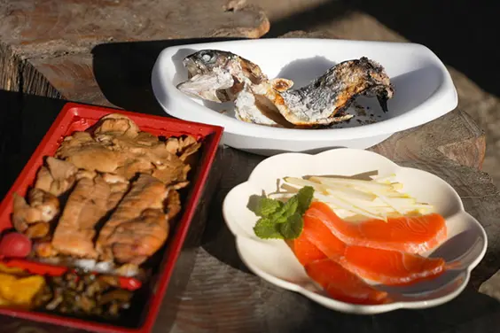 マスの塩焼き 」と「頂鱒(イタダキマス)のスモーク」、群馬県のソウルフードとして知られる館林市の老舗小料理店·登利平の「鳥めし弁当【松】」が提供されます。
